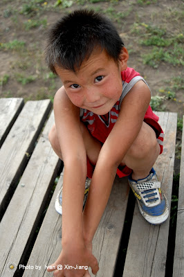 趕緊回車上取了昨晚在布爾津還剩下的一大塊饃饃給她