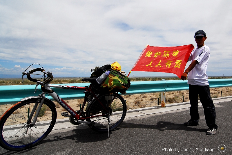 閒聊中發現他有項令人欽佩的壯舉."就是騎車做環保"